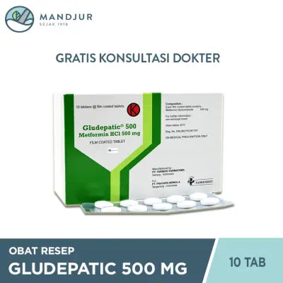 Gludepatic (Metformin HCl 500 mg) adalah antidiabetik oral golongan biguanida. Metformin HCl dapat menurunkan kadar glukosa darah pada pasien diabetes terutama dengan meningkatkan aksi insulin. Metformin HCl juga memperbaiki sensitifitas terhadap insulin, menekan glukoneogenesis di hati, merangsang glikolisis dan menghambat absorpsi glukosa dari usus.