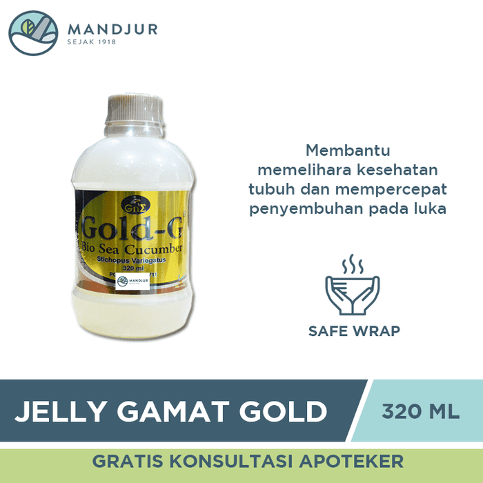 Jelly Gamat Gold - G Sea Cucumber merupakan produk jelly gamat yang terbuat dari ekstrak teripang laut jenis Golden Sea Cucumber (Stichopus Variegatus). Teripang jenis tersebut mengandung gamapeptide yang berkhasiat untuk membantu memelihara kesehatan tubuh, mengurangi terjadinya inflamasi / peradangan, serta memelihara sirkulasi darah.