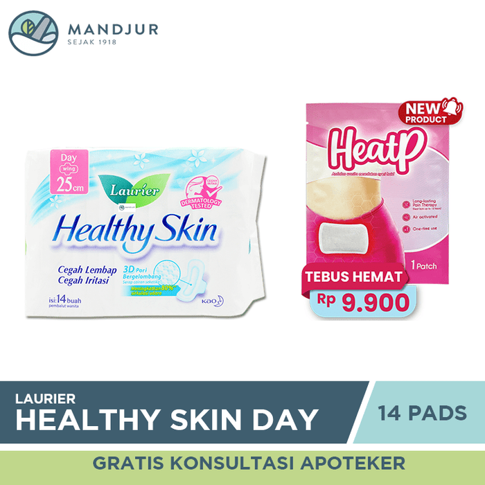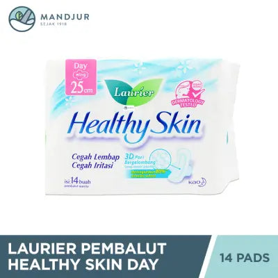 Laurier Healthy Skin Day merupakan pembalut wanita dengan sistem inovasi 3D Pori Bergelombang yang mampu menyerap cairan seketika dan meningkatkan 80% sirkulasi udara agar pembalut tetap kering.?Laurier Healthy Skin Day telah teruji secara klinis cegah risiko iritasi kulit area kewanitaan. Di design dengan panjang 25 cm dan dilengkapi satap pelindung untuk mencegah terjadinya kebocoran.