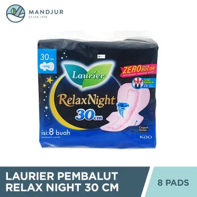 Laurier Relax Night Wing 30cm adalah pembalut wanita malam hari dengan panjang 30 cm yang memberikan perlindungan tidur bebas bocor selama 10 jam. Bagian tengah pembalut mengunci cairan dan gumpalan dengan maksimal. Serap banyak dan cepat sepanjang malam. Memiliki struktur bebas celah dan wing sehingga bebas bocor karena tidak geser dan darah tidak menyebar di permukaan.