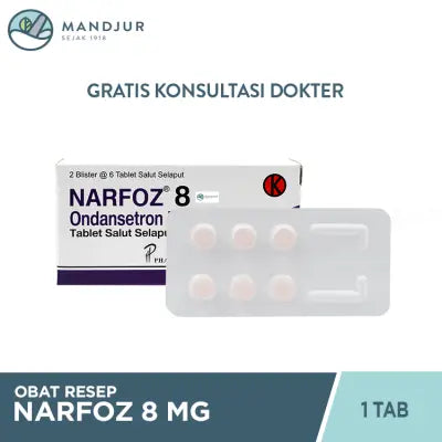 Narfos (Ondansetron HCl Dihydrate 8 mg) adalah antagonis reseptor 5HT3 yang poten dan selektif, Pemberian obat-obatan kemoterapi dan radioterapi dapat menyebabkan pelepasan 5HT3 kedalam usus halus yang akan merangsang refleks muntah dengan mengaktifkan serabut afferen vagal lewat reseptor 5HT3. Ondantesron menghambat dimulainya refleks ini.