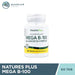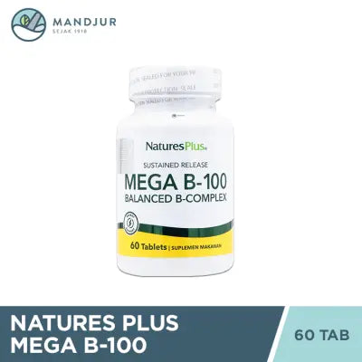 Natures Plus Mega B-100 merupakan suplemen Vitamin B kompleks yang sangat penting untuk kesehatan, teristimewa bagi yang mempunyai aktivitas tinggi, mengalami " stress ", makan tidak teratur, cepat merasa lelah, peminum alkohol dan perokok (karena kadar vitamin B dalam tubuhnya berkurang).