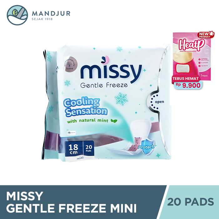Missy Gentle Freeze Mini merupakan produk pembalut kewanitaan yang didesain dengan bentuk mini seperti pantyliner untuk penggunaan akhir periode menstruasi sehingga tetap aman, nyaman, dan lebih percaya diri dalam beraktivitas. Pembalut ini dapat digunakan saat beraktivitas di pagi atau siang hari. Pembalut ini juga dipacking Super Aman Kemasan aluminium foil pada per-satuan pembalut mengandung antibakterial seal yang kedap udara dan air yang berguna mencegah masuknya bakteri, jamur dan virus.