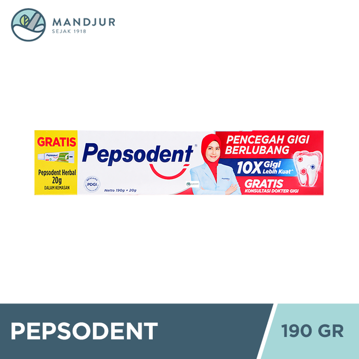 Pepsodent merupakan produk pasta gigi yang diformulasikan untuk mencegah masalah gigi berlubang dengan kandungan Mikro Kalsium dan Pro Fluoride Kompleks mampu melawan bakteri dan memberikan perlindungan pagi dan malam untuk menjaga gigi keluarga anda dari masalah gigi berlubang.
